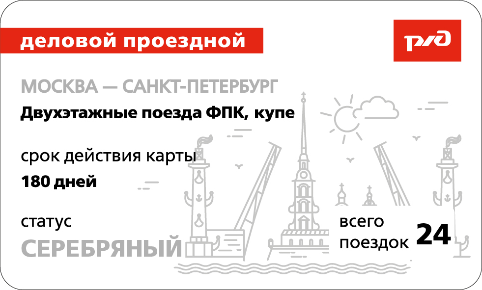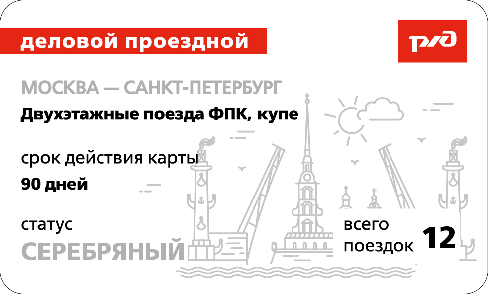 «Деловой проездной» распространяется на двухэтажные поезда формирования АО «ФПК» в направлении Москва – Санкт-Петербург и обратно.