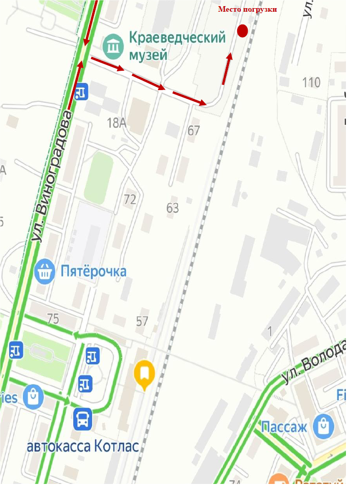 • в г. Воркута по адресу: ул. Привокзальная, д. 18, на погрузочную площадку станции Воркута, расположенную на пути №21с (схема проезда).