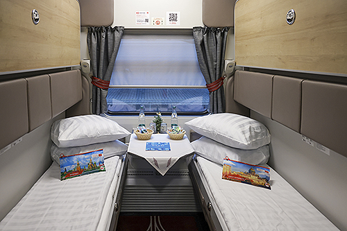 В новых вагонах, помимо двух санитарных комнат, есть отдельная душевая. Предусмотрены и другие детали комфорта: покупейная регулировка температуры, индивидуальные светильники и сейфы, а также розетки, USB-порты и беспроводные зарядные устройства на столах. Верхние спальные места оборудованы отдельными столиками.